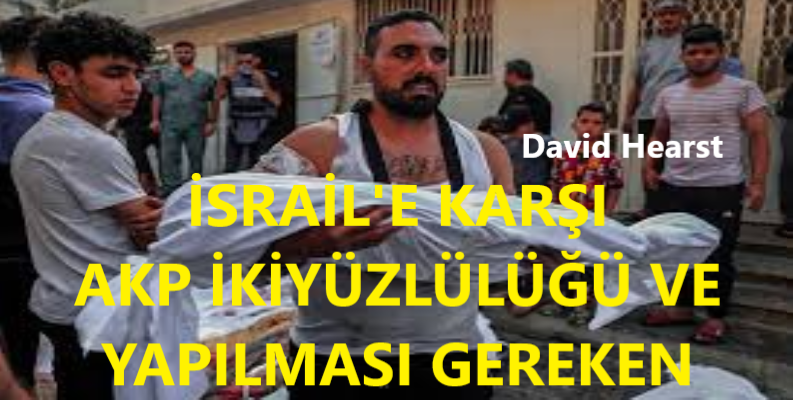 David Hearst, AKP’nin iki yüzlü politikasını ve İsrail’e karşı ancak silâhla mukavemet edilirse durdurulabileceğini açıkça belirtmiş. İsrail konuşarak, diplomasiyle, Batılılara başvurarak, onların merhamet göstermelerini bekleyerek durdurulamaz… Şehidlik şuuru ile, “kötülüklere karşı elinizle müdahale edin” emrini yerine getirmemeye sebep nedir? Elbette ki o şuurun olmayışı, gizli inançsızlık. Dövüşeni seyretmek, dövüşeni silâhsızlandırmaya çalışıcı ihanet ve hatta bir de ticaret adı altında düşmana yardım ediyor olmak… İsrail’e niye anladığı dilden konuşamıyorlar? Emperyalist sistem sayesinde elde edilen koltuklardan olmak kaygısı mı? Sonra kelimeler: “Bağımsızlık, millî-yerli, vatan, millet, sakarya, din, imân… Gazze, Filistin, Mescidi Aksa; bizim için kutsal…” Mavalları bastırdı artık bu masal… Soykırım yapan İsrail’e karşı miyav miyav “püsük” diplomasisi, içeride saltanatlarına iki kelâm eden karşısında aslan… İsrail, kendisini caydıracak bir iş yapmadan, çok konuşup da çok iş yaptık diyenler sayesinde soykırım yapıyor. Hearst’ün, Mepanews’te yayınlanan yazısının ilgili kısmı aşağıda: