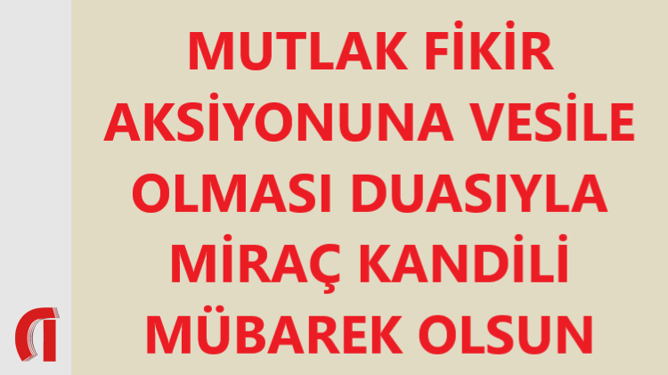 MUTLAK FİKİR AKSİYONUNA VESİLE OLMASI DUASIYLA MİRAÇ KANDİLİ MÜBAREK OLSUN